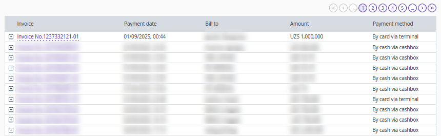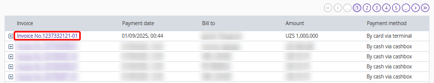 The list of invoices and payments for the selected period will be displayed. The table contains the following columns: