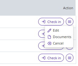 Click the “Action” button to edit or cancel a booking and open its related documents.