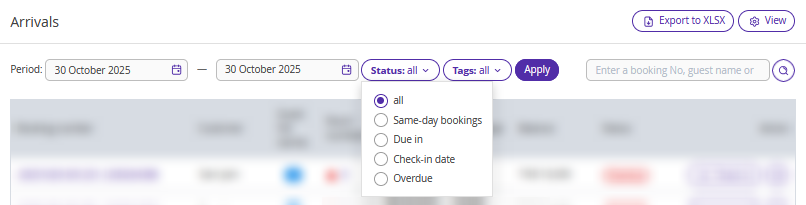 To download the list of bookings as an Excel file, click the “Export to XLSX” button.