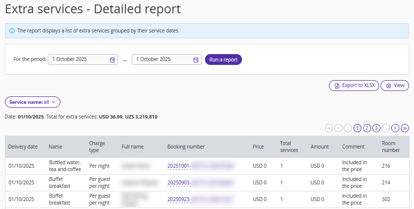 Pay attention. The report does not include services from bookings in rooms for which “Ignore in statistics” is selected in the room inventory settings.