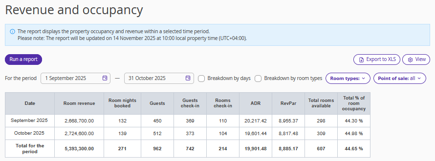Booking window — the average number of days between the booking date and the check-in date for the selected dates or months. Booking window = Total number of days between booking creation date and planned check-in date / Number of rooms booked for that date.