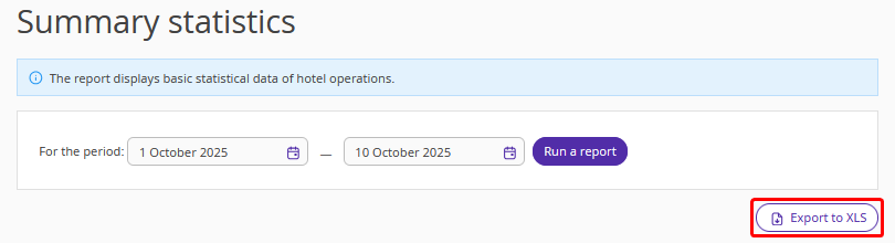 Data in the report is updated automatically in real time based on actions in Exely PMS.