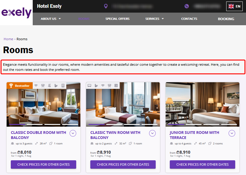 More details are available in the instruction “Website SEO in Exely Hotel Website Builder”.