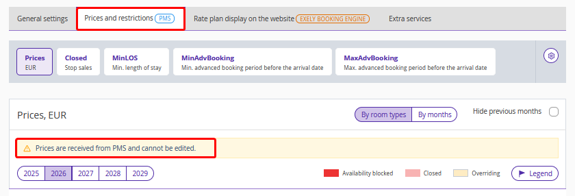 Price management modes if Exely extranet is integrated with PMS