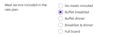 5. If meals are included in the rate plan, select the required meal type. You can set meal services in the “Property settings” > “Extra services”.