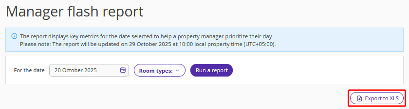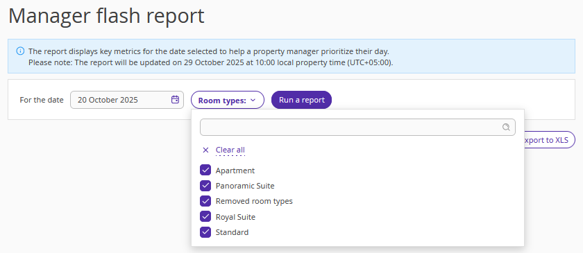 You will receive an Excel file with the date of the report generation in the title. All room types that you previously selected will be included in the report.