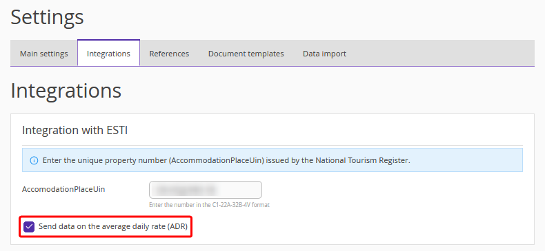 If this check-box is not ticked, a value of 0.00 EUR will be sent to ESTI for each guest for the ADR parameter. By default, this setting is disabled.