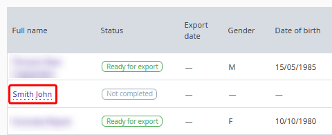 To enter the data, click the guest name in the report. The guest profile will be opened, where you can fill in the required fields.