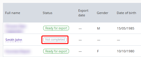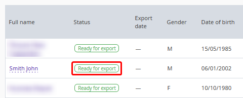 After all mandatory fields are filled in, the entry status changes to "Ready for export".