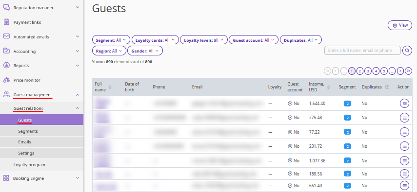 Pay attention. The guest data is saved in the guest database, if the guest provided their phone number or email address or made a booking. Guests who have only filled in their first and last names will not be added to the guest database.