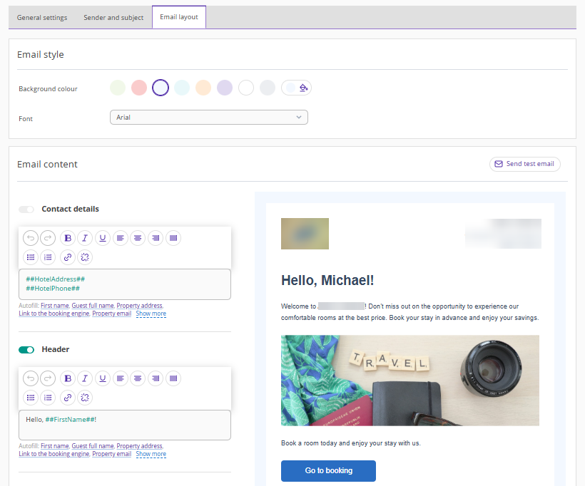Use variables if needed so booking data is automatically inserted into the email.