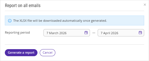 3. In the opened window, in the "Reporting period" field, select the required dates and click "Generate a report".
