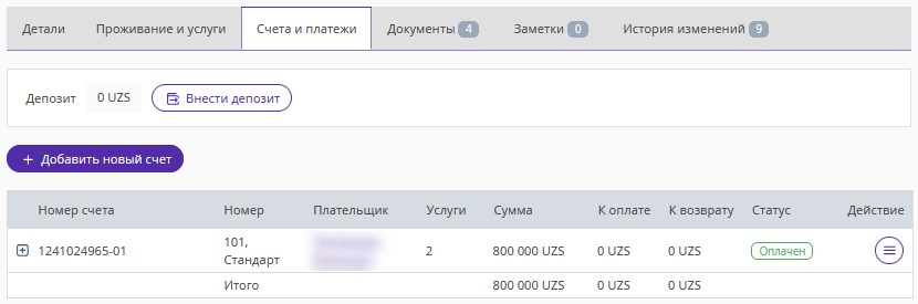 Перейдите в любое бронирование на вкладку «Счета и платежи».