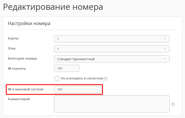 Если необходимо изменить номер в замковой системе, нажмите на номер комнаты, укажите нужный номер и нажмите кнопку «Сохранить» на верхней панели. Используйте номера замковой системы в разделе VISIONLINE «Двери».