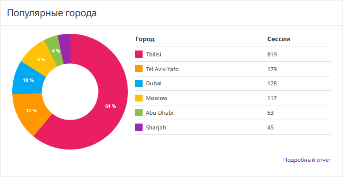 Нажмите «Подробный отчет», чтобы получить отчет по всем городам. Отчет откроется в новой вкладке.
