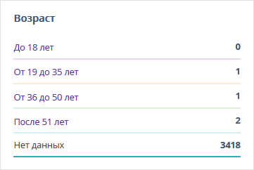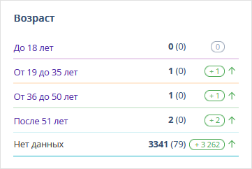 Блок содержит информацию о количестве гостей определенного возраста, которые числились в сегменте любое количество дней из установленного в фильтре периода.