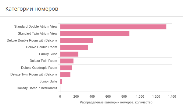 Диаграмма содержит информацию о распределении бронирований по различным типам номеров.