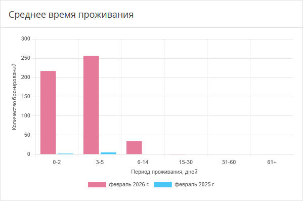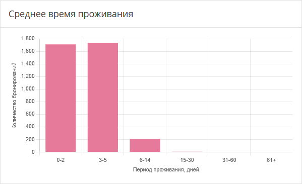 Диаграмма показывает среднюю продолжительность пребывания гостей в средстве размещения.