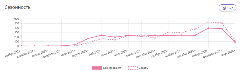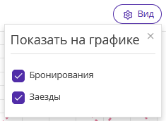 Нажмите кнопку «Вид», чтобы настроить отображение графиков бронирования или заездов.