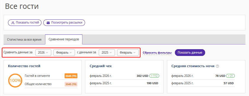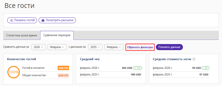 Второе число — количество гостей, которые заселились во втором периоде, установленном в фильтре.