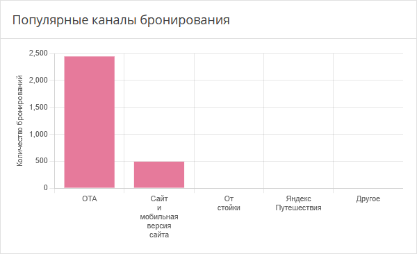 Диаграмма показывает каналы, через которые средство размещения получает наибольшее количество бронирований.