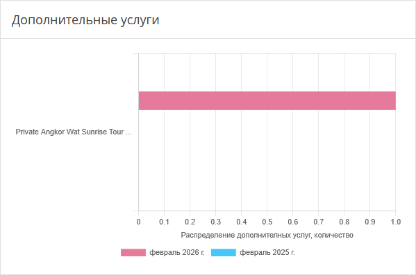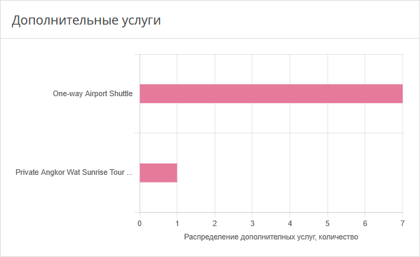Диаграмма показывает, какими услугами чаще всего пользовались гости в бронированиях, которые были совершены в выбранные периоды.
