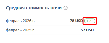 Число в рамке показывает разницу между стоимостью номероночи в выбранные периоды и отображает рост или уменьшение значения.