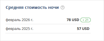 Число в рамке показывает разницу между средней стоимостью бронирования в выбранные периоды и отображает рост или уменьшение значения.