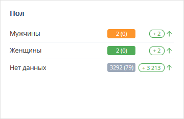Блок содержит информацию о количестве гостей соответствующего пола, которые числились в сегменте любое количество дней из установленного в фильтре периода.