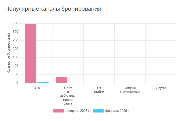 Диаграмма отображает количество бронирований из каналов продаж, которые были совершены за выбранные в фильтре периоды.