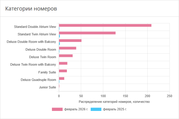 Диаграмма содержит информацию о распределении бронирований, которые были совершены в выбранные периоды по различным категориям номеров.