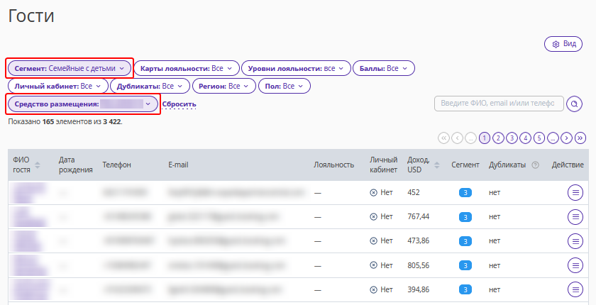 После этого откроется страница в разделе «Управление гостями» → «Мои гости» → «Гости». В таблице отображен список гостей, которые входят в сегмент.