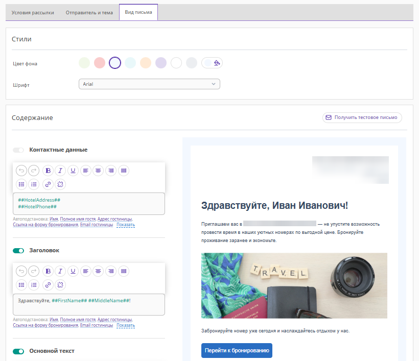 При необходимости, используйте автоподстановки, чтобы данные из бронирования автоматически выгружались в письмо.