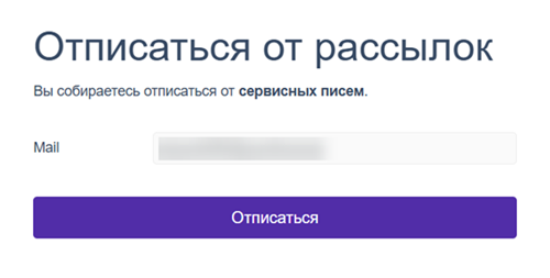 В открывшемся окне будет отображаться email, для которого будет отключена рассылка.