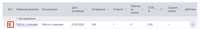 2. В списке созданных рассылок переведите переключатель в столбце «Вкл.» в активное состояние.