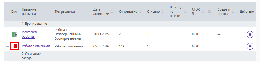 Чтобы остановить отправку писем в рамках рассылки, в экстранете Exely в разделе «Управление гостями» → «Мои гости» → «Рассылки» деактивируйте рассылку одним из способов: