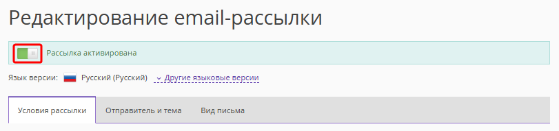 1. Откройте нужную рассылку и измените положение переключателя.