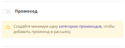 Если в настройках шаблона письма блок «Промокод» неактивен, возможны 2 состояния переключателя: