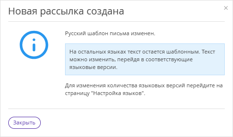 Рассылки, которые создаются на языке средства размещения, автоматически не переводятся на другие языки и содержат шаблонный текст.
